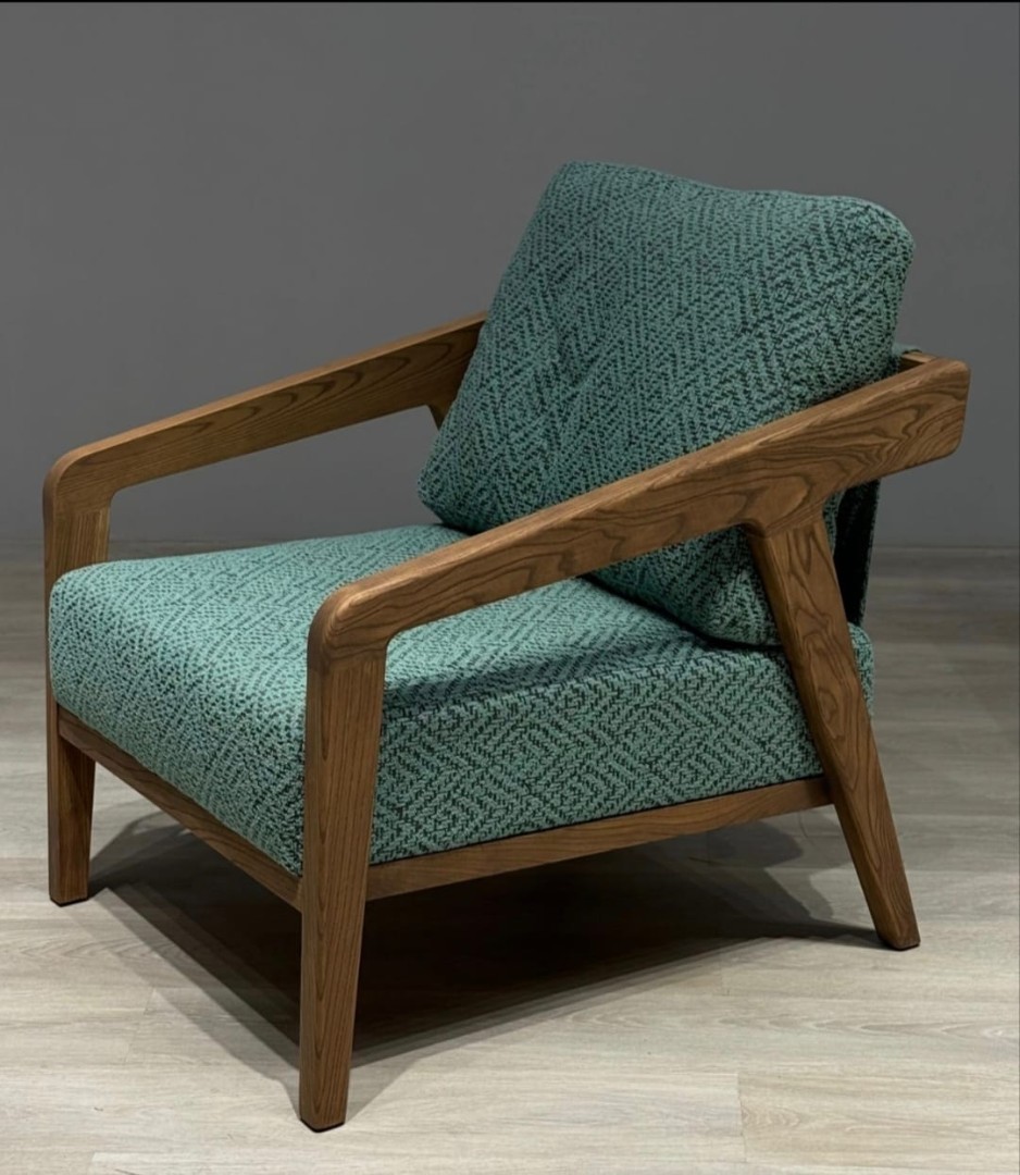 Каркас кресла, подлокотники и опоры выполнены из массива бука/ясеня. Покрытие морилка, цвет - Орех. Наполнение сидения - независимый пружинный блок, многослойный ППУ. Спинка выполнена из ткани. Наполнение приспинных подушек - многослойный ППУ.