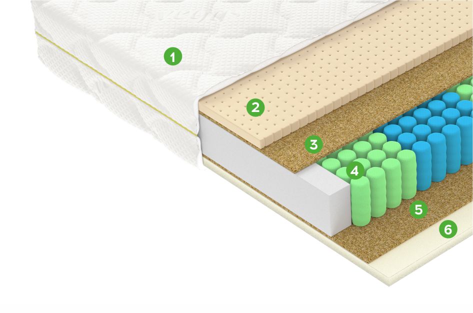 Инновационный блок стальных независимых пружин с семью поперечными зонами жесткости. Сбалансированное распределение жесткости по зонам гарантирует комфортный отдых c учетом анатомических особенностей спящего.