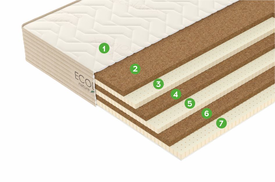 Классический беспружинный матрас из трёх слоёв мягкого, упругого, гигиеничного латекса, чередующихся с тремя слоями жёсткой кокосовой койры – отличный профилактический выбор для сна ребёнка в период формирования осанки и роста организма. Матрасы коллекции Ecolatex созданы специально для тех людей, чьим источником вдохновения, сил и бодрости является сама природа. Они не только поддерживают тело в естественном положении, но и балуют кожу нежностью натуральной дышащей ткани. Коллекция Ecolatex – это здоровье, комфорт, согласие с собой и окружающим миром.